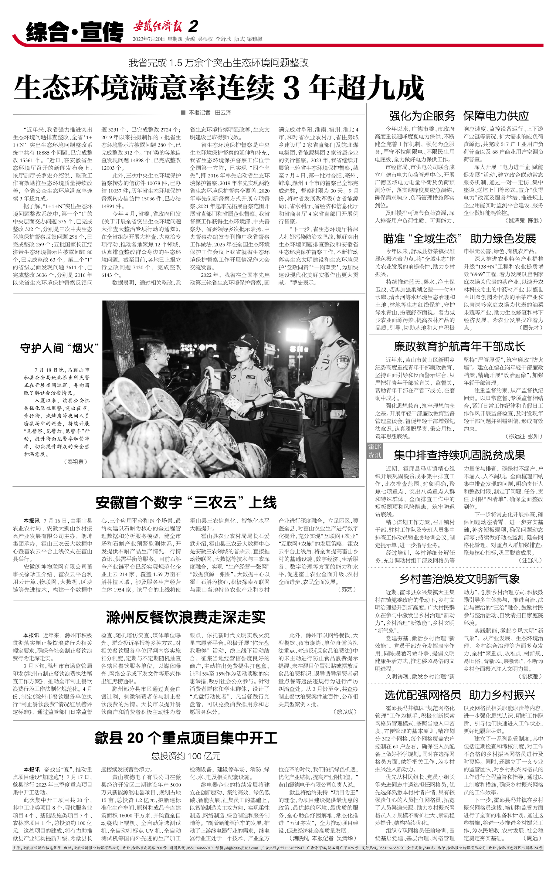 生态环境满意率连续3年超九成