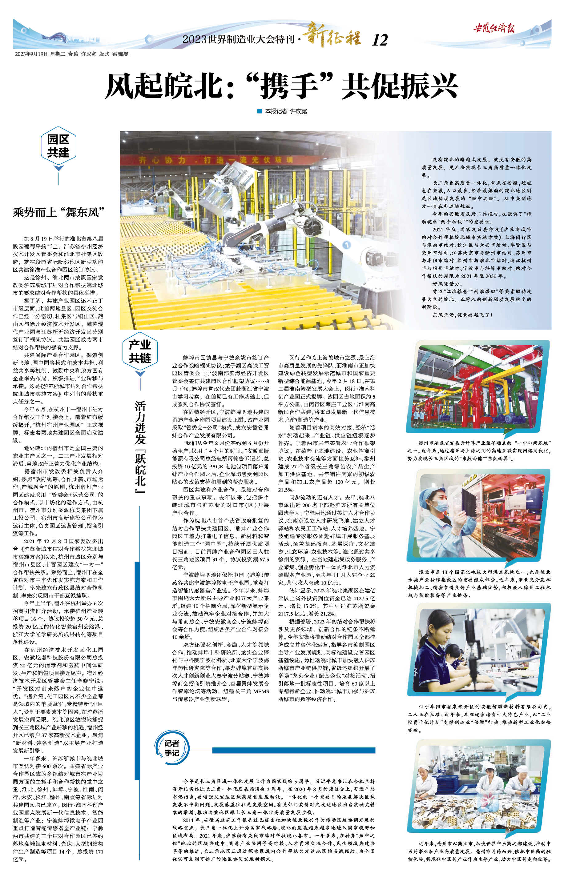 园区共建和产业合作,是结对合作帮扶的重点事项。去年以来,包括多个皖北城市与沪苏浙的对口市(区)开展产业合作。