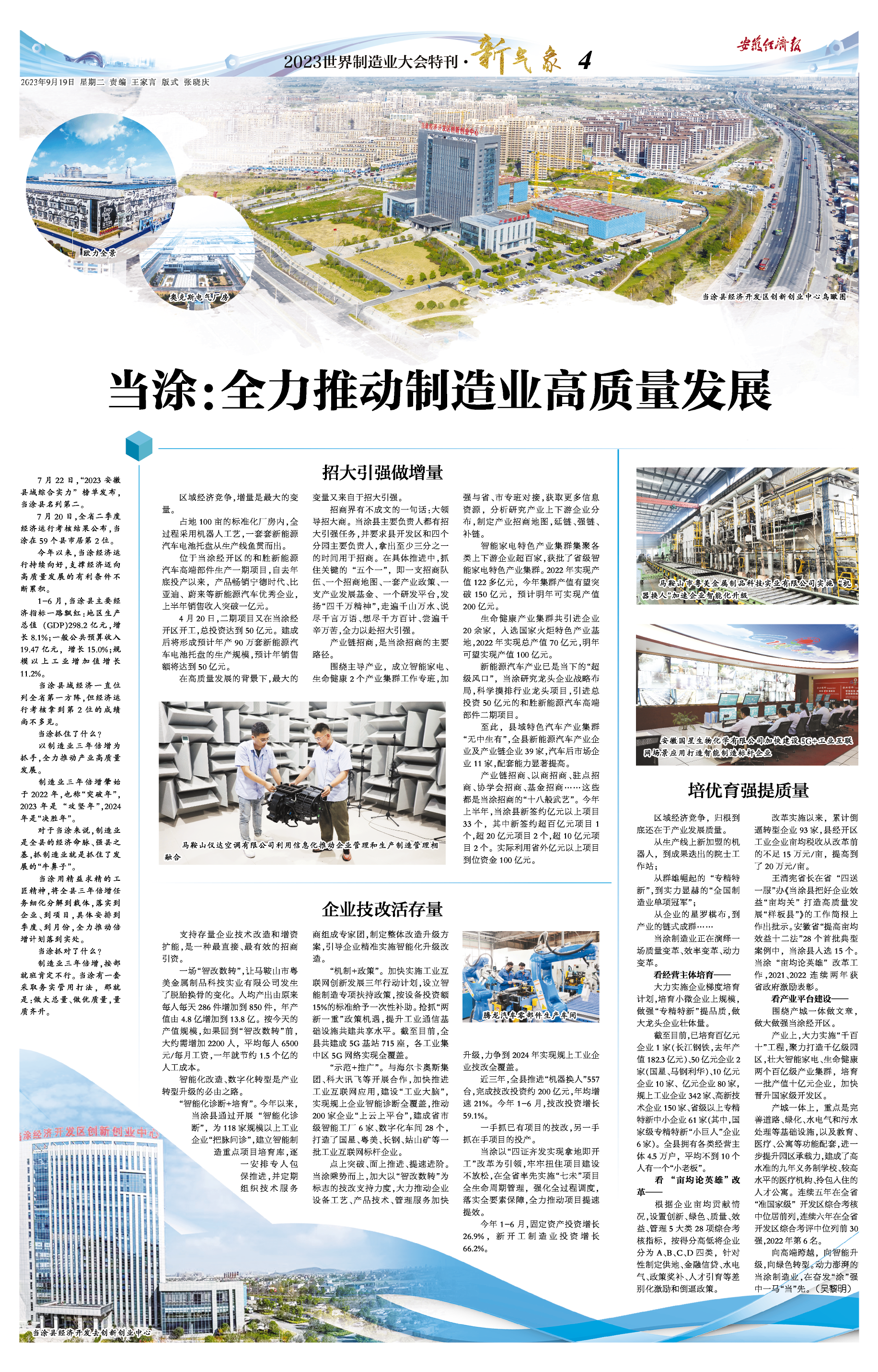 向高端跨越,向智能升级,向绿色转型。动力澎湃的当涂制造业,在奋发“涂”强中一马“当”先。(吴黎明)