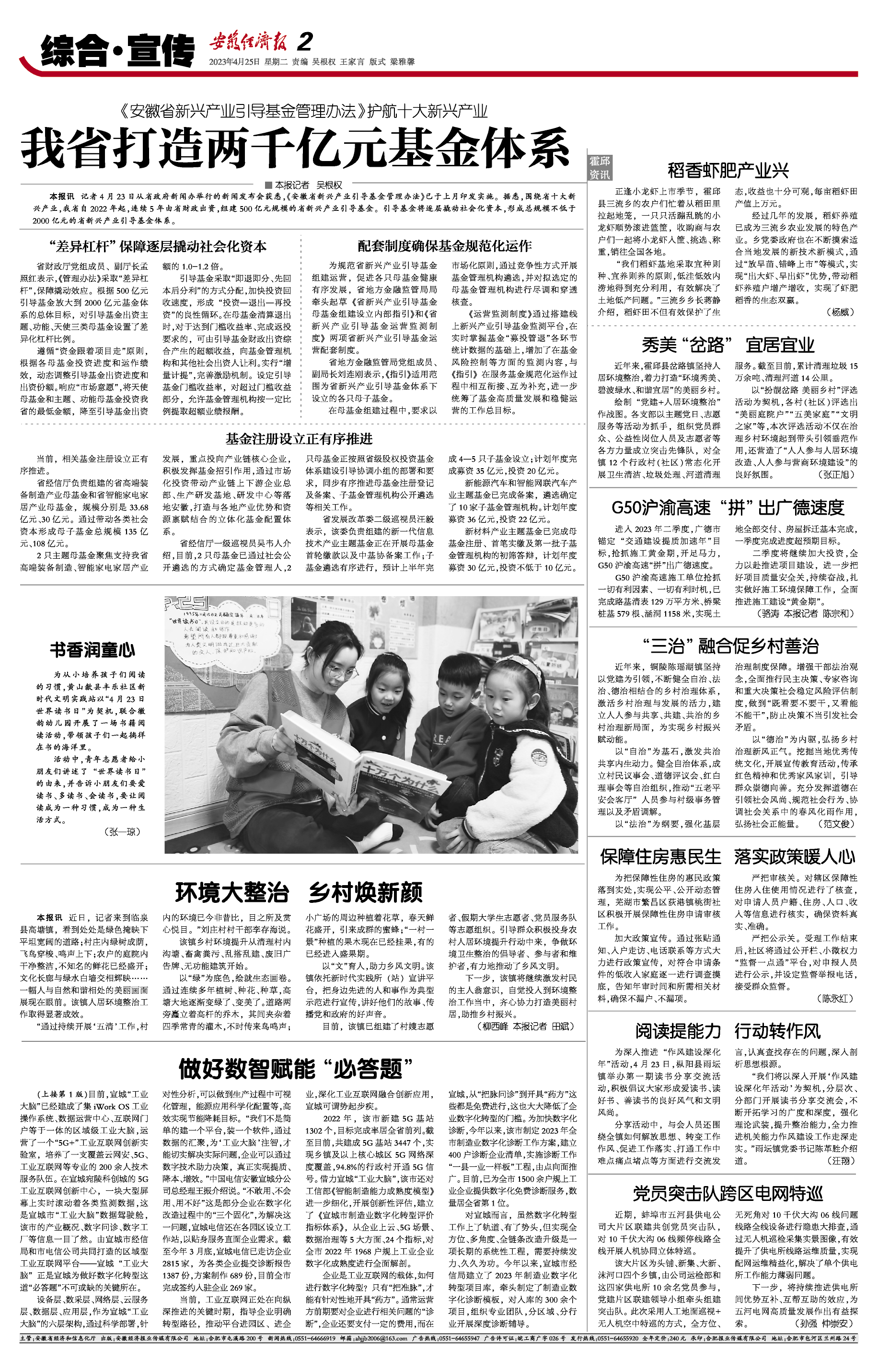 本报讯 记者4月23日从省政府新闻办举行的新闻发布会获悉,《安徽省新兴产业引导基金管理办法》已于上月印发实施。据悉,围绕省十大新兴产业,我省自2022年起,连续5年由省财政出资,组建500亿元规模的省新兴产业引导基金。引导基金将逐层撬动社会化资本,形成总规模不低于2000亿元的省新兴产业引导基金体系。