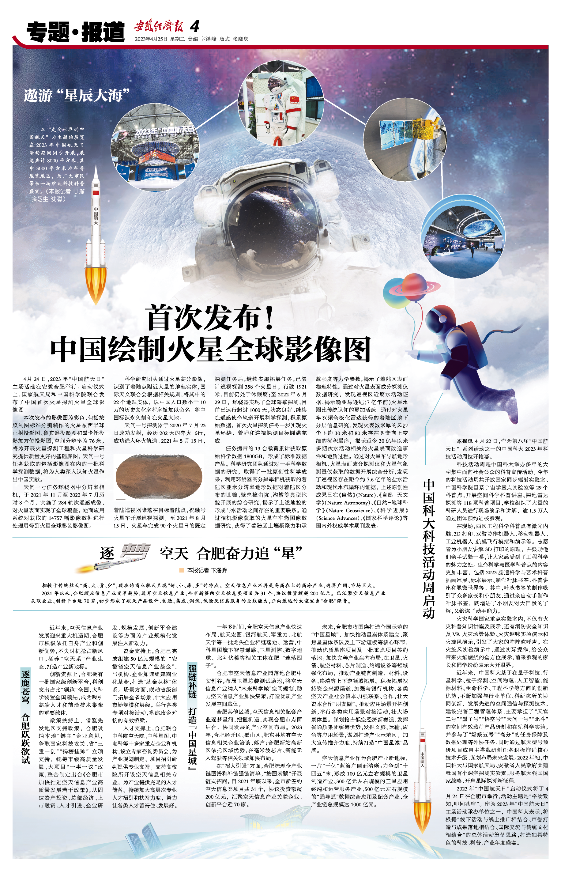 4月24日,2023年“中国航天日”主场活动在安徽合肥举行。启动仪式上,国家航天局和中国科学院联合发布了中国首次火星探测火星全球影像图。