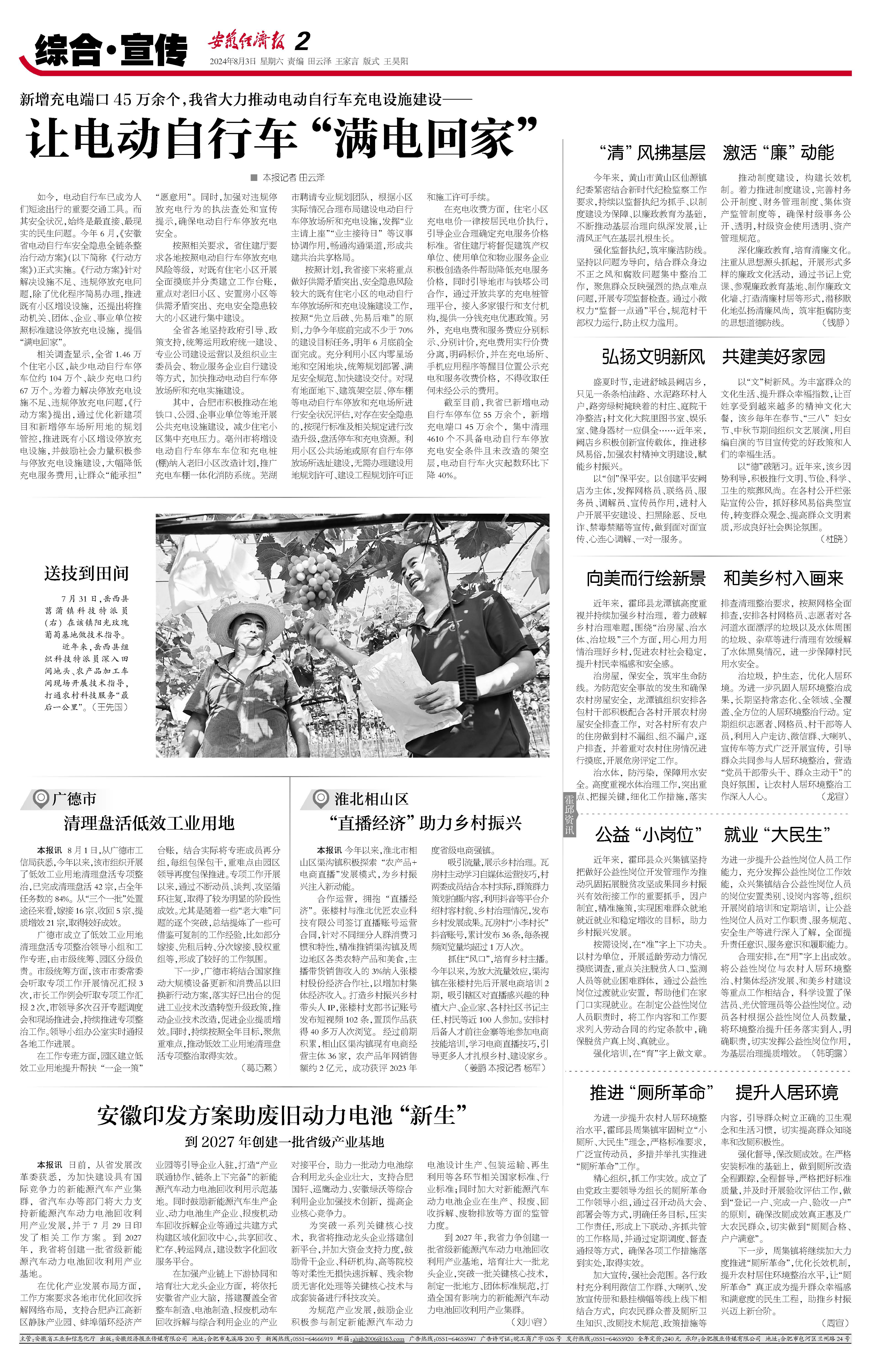 如今,电动自行车已成为人们短途出行的重要交通工具。而其安全状况,始终是最直接、最现实的民生问题。今年6月,《安徽省电动自行车安全隐患全链条整治行动方案》(以下简称《行动方案》)正式实施。《行动方案》针对解决设施不足、违规停放充电问题,除了优化程序简易办理,推进既有小区增设设施,还提出将推动机关、团体、企业、事业单位按照标准建设停放充电设施,提倡“满电回家”。