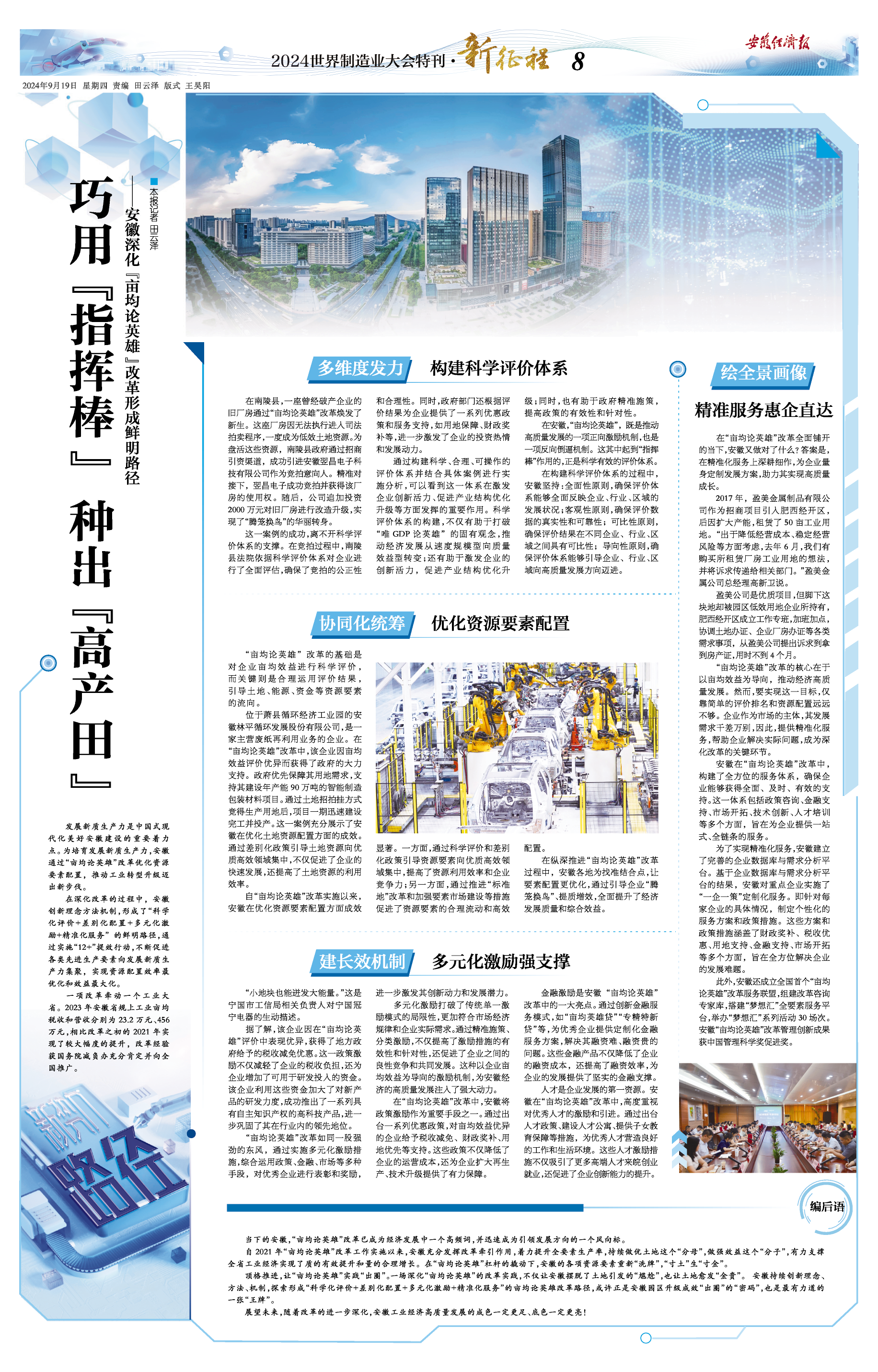 编后语 当下的安徽,“亩均论英雄”改革已成为经济发展中一个高频词,并迅速成为引领发展方向的一个风向标。