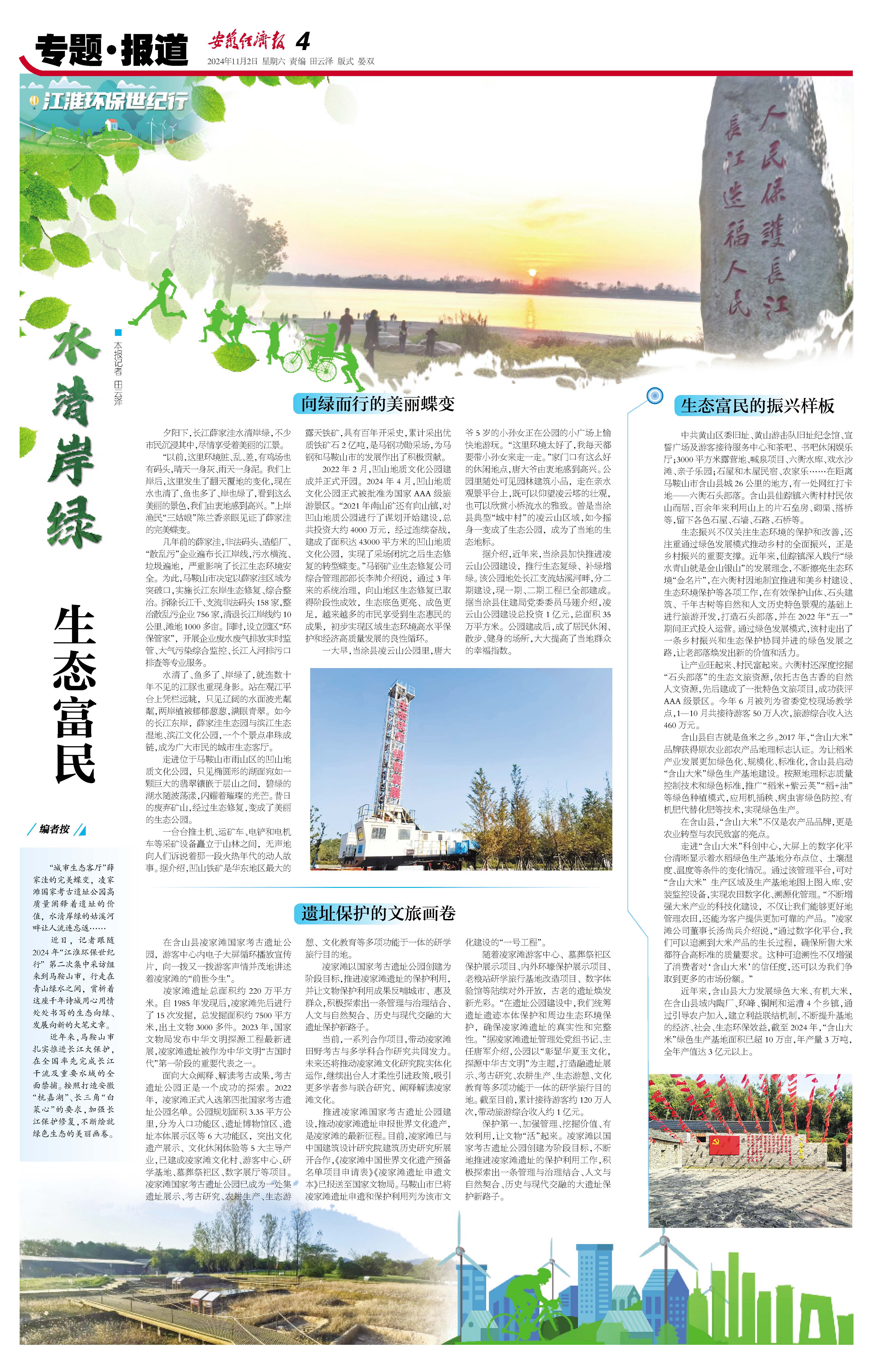 近日,记者跟随2024年“江淮环保世纪行”第二次集中采访组来到马鞍山市,行走在青山绿水之间,赏析着这座千年诗城用心用情处处书写的生态向绿、发展向新的大笔文章。