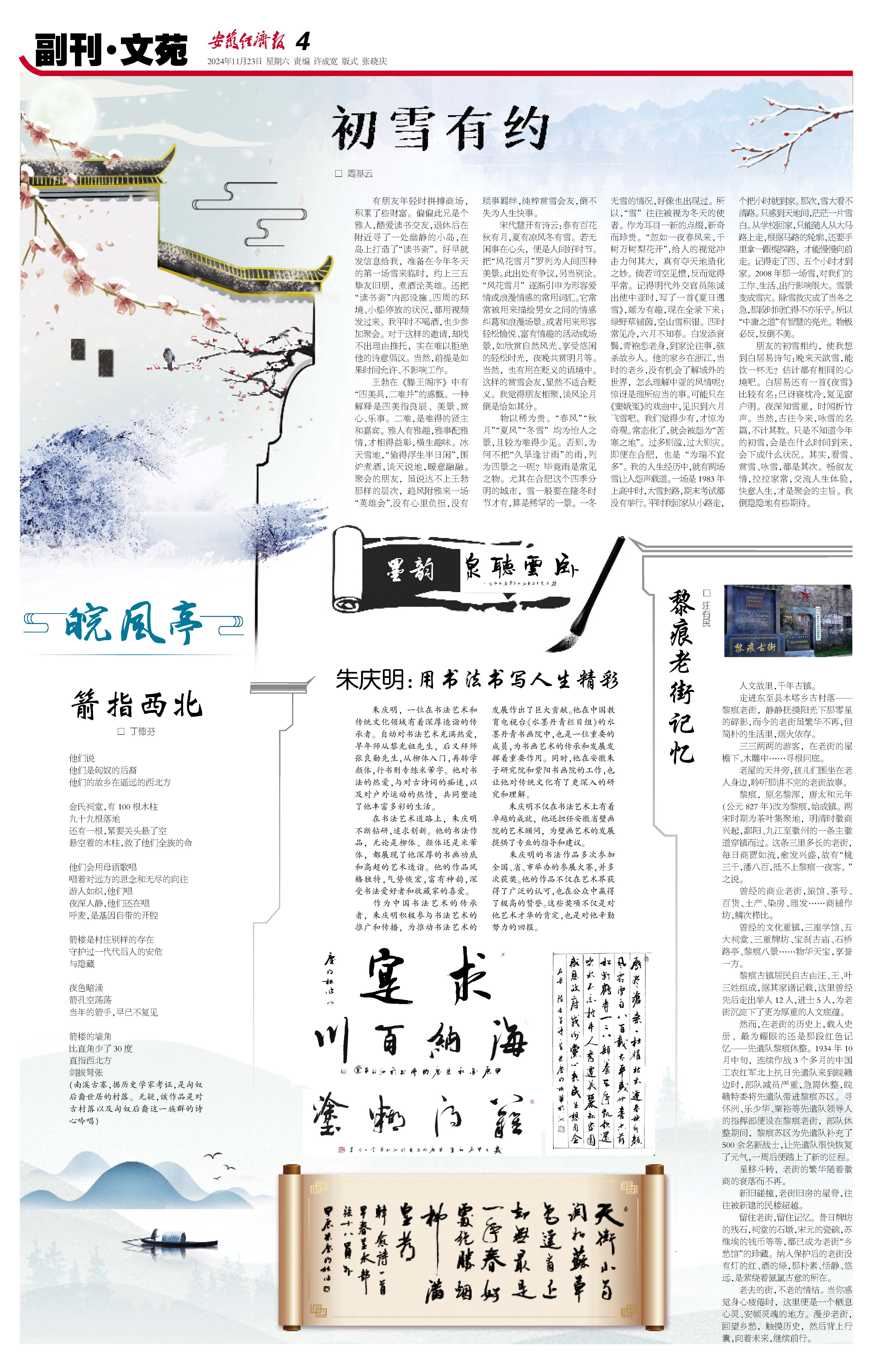 物以稀为贵。“春风”“秋月”“夏风”“冬雪”均为怡人之景,且较为难得少见。否则,为何不把“久旱逢甘雨”的雨,列为四景之一呢?毕竟雨是常见之物。尤其在合肥这个四季分明的城市,雪一般要在隆冬时节才有,算是稀罕的一景。一冬无雪的情况,好像也出现过。所以,“雪”往往被视为冬天的使者。作为耳目一新的点缀,新奇而珍贵。“忽如一夜春风来,千树万树梨花开”,给人的视觉冲击力何其大,真有夺天地造化之妙。倘若司空见惯,反而觉得平常。记得明代外交官员陈诚出使中亚时,写了一首《夏日遇雪》,颇为有趣,现在全录下来:绿野草铺茵,空山雪积银。四时常见冷,六月不知春。白发添衰鬓,青袍恋老身,到家论往事,骇杀故乡人。他的家乡在浙江,当时的老乡,没有机会了解域外的世界,怎么理解中亚的风情呢?惊讶是理所应当的事。可能只在《窦娥冤》的戏曲中,见识到六月飞雪吧。我们觉得少有,才惊为奇观。常态化了,就会被怨为“苦寒之地”。过多则滥,过大则灾。即便在合肥,也是“为瑞不宜多”。我的人生经历中,就有两场雪让人怨声载道。一场是1983年上高中时,大雪封路,期末考试都没有举行。平时我回家从小路走,个把小时就到家。那次,雪大看不清路。只感到天地间,茫茫一片雪白。从学校回家,只能随人从大马路上走,根据马路的轮廓,还要手里拿一跟棍探路,才能慢慢向前走。记得走了四、五个小时才到家。2008年那一场雪,对我们的工作、生活、出行影响很大。雪景变成雪灾。除雪救灾成了当务之急,那段时间忙得不亦乐乎。所以“中庸之道”有智慧的亮光。物极必反,反倒不美。